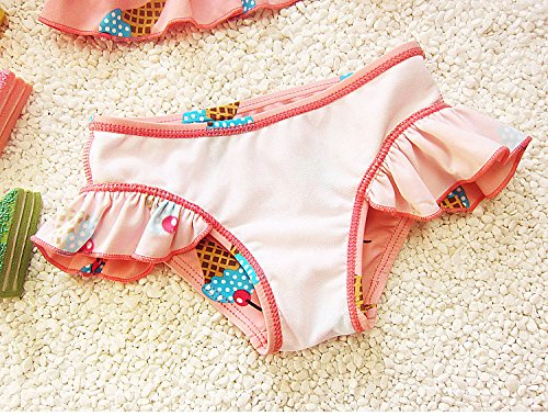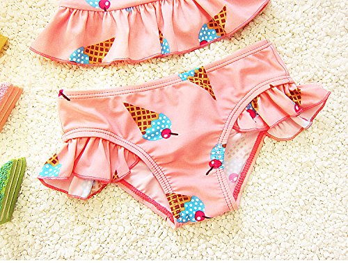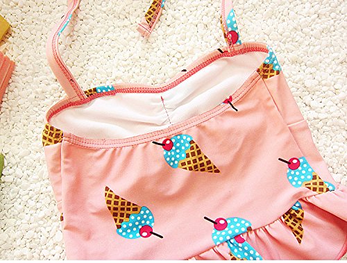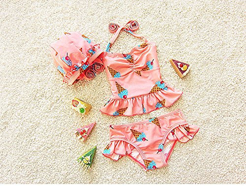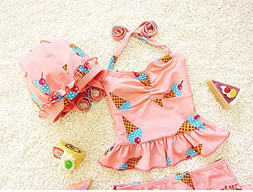 S&C Live 水着 ビキニー キッズ子供 女の子 ガールズ ビキニトップス+ビキニ+キャップ3点セット水着 可愛いアイスクリーム柄 ピンク/イエロー スウィート風 ベビー水着 赤ちゃん水着 出産お祝いプレゼント 子供お誕生日プレゼント 七三五祝いプレゼント スイムスーツ ジュニア水着 旅行 ビーチ 海 川遊び スイミング 水泳トレーニング水着 幼稚園用 新生児水着 女の子 競泳水着 春夏新作#17292 (XL, ピンク)