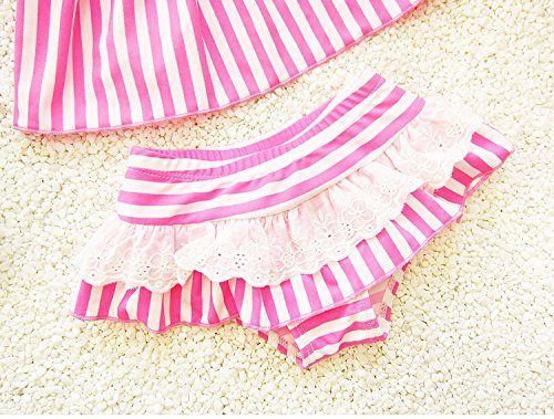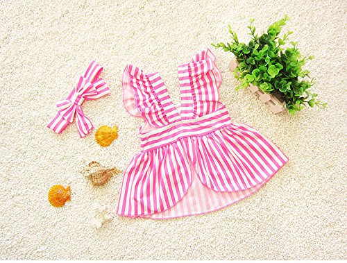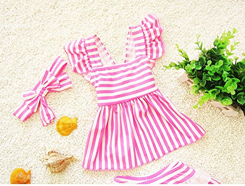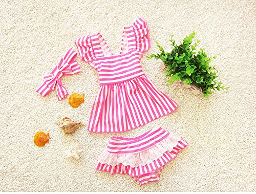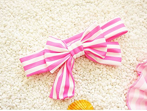 S&C Live 水着 キッズ子供 女の子  ガールズ ビキニワンピース+ビキニ+ヘアバンド3点セット水着 可愛いボーダー柄 ピンク/ネイビー スウィート風 ベビー水着 赤ちゃん水着 出産お祝いプレゼント 子供お誕生日プレゼント 七三五祝いプレゼント スイムスーツ ジュニア水着 旅行 ビーチ 海 川遊び スイミング 水泳トレーニング水着 幼稚園用 新生児水着 女の子 春夏新作#17291 (M, ピンク)