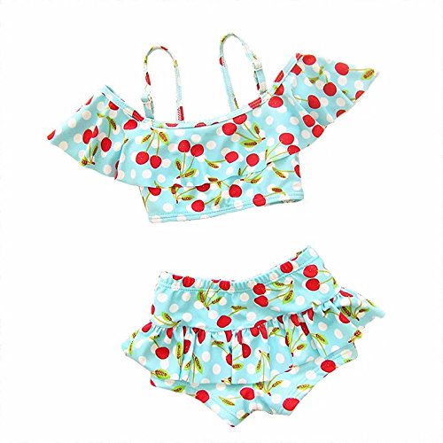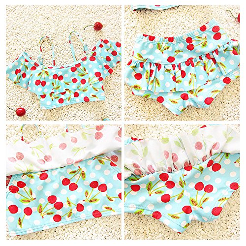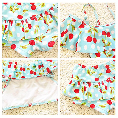 S&C Live 水着 ビキニー キッズ子供 女の子 ガールズ ビキニトップス+ビキニ2点セット水着 可愛いサクランボ柄 ピンク/イエロー/ブルー/ネイビー スウィート風 ベビー水着 赤ちゃん水着 出産お祝いプレゼント 子供お誕生日プレゼント 七三五祝いプレゼント スイムスーツ ジュニア水着 旅行 ビーチ 海 川遊び スイミング 水泳トレーニング水着 幼稚園用 新生児水着 女の子 競泳水着 春夏新作#17838 (Ⅿ, ブルー)