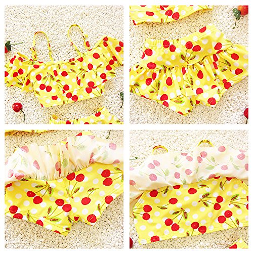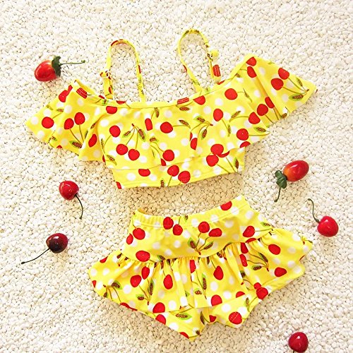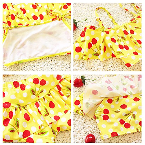 S&C Live 水着 ビキニー キッズ子供 女の子 ガールズ ビキニトップス+ビキニ2点セット水着 可愛いサクランボ柄 ピンク/イエロー/ブルー/ネイビー スウィート風 ベビー水着 赤ちゃん水着 出産お祝いプレゼント 子供お誕生日プレゼント 七三五祝いプレゼント スイムスーツ ジュニア水着 旅行 ビーチ 海 川遊び スイミング 水泳トレーニング水着 幼稚園用 新生児水着 女の子 競泳水着 春夏新作#17838 (XS, イエロー)