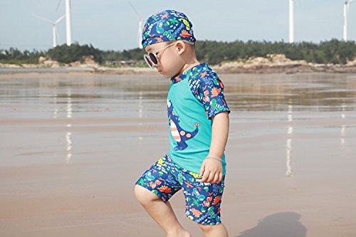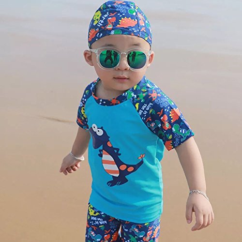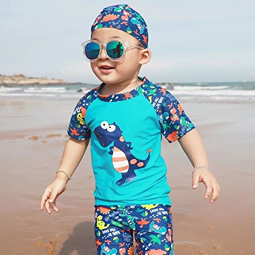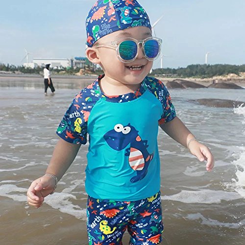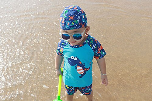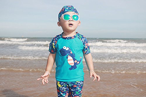 S&C Live 水着 キッズ子供 男の子 キャップ付水着3点セット UVカット 速乾 恐竜柄/シャーク柄/トーマス柄/魚柄 半袖/長袖 ベビー水着 赤ちゃん水着 出産お祝いプレゼント 子供お誕生日プレゼント 七三五祝いプレゼント スイムスーツ ジュニア水着 旅行 ビーチ 海 川遊び スイミング 水泳トレーニング水着 幼稚園用 保育園プール用#17885 (身長115-125cm, Ⅳ)