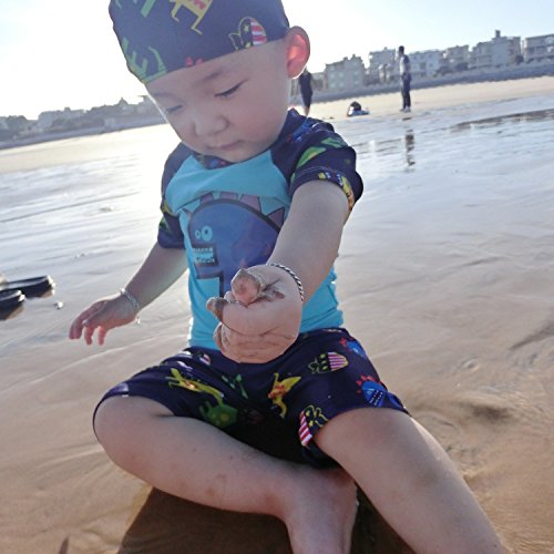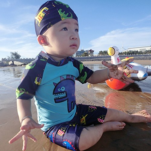 S&C Live 水着 キッズ子供 男の子 キャップ付水着3点セット UVカット 速乾 恐竜柄/シャーク柄/トーマス柄/魚柄 半袖/長袖 ベビー水着 赤ちゃん水着 出産お祝いプレゼント 子供お誕生日プレゼント 七三五祝いプレゼント スイムスーツ ジュニア水着 旅行 ビーチ 海 川遊び スイミング 水泳トレーニング水着 幼稚園用 保育園プール用#17885 (身長80-90㎝,  Ⅲ)