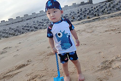 S&C Live 水着 キッズ子供 男の子 キャップ付水着3点セット UVカット 速乾 恐竜柄/シャーク柄/トーマス柄/魚柄 半袖/長袖 ベビー水着 赤ちゃん水着 出産お祝いプレゼント 子供お誕生日プレゼント 七三五祝いプレゼント スイムスーツ ジュニア水着 旅行 ビーチ 海 川遊び スイミング 水泳トレーニング水着 幼稚園用 保育園プール用#17885 (身長80-90㎝, Ⅱ)