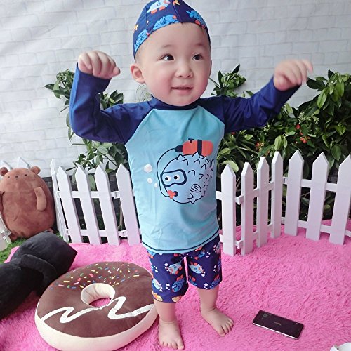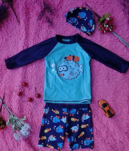S&C Live 水着 キッズ子供 男の子 キャップ付水着3点セット UVカット 速乾 恐竜柄/シャーク柄/トーマス柄/魚柄 半袖/長袖 ベビー水着 赤ちゃん水着 出産お祝いプレゼント 子供お誕生日プレゼント 七三五祝いプレゼント スイムスーツ ジュニア水着 旅行 ビーチ 海 川遊び スイミング 水泳トレーニング水着 幼稚園用 保育園プール用#17885 (身長105-115cm, Ⅶ)