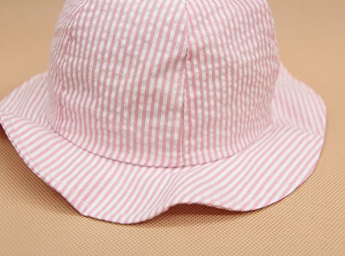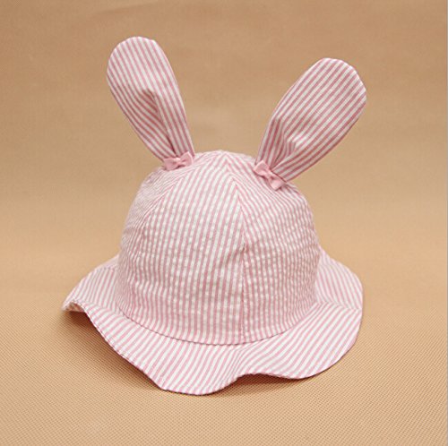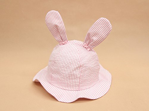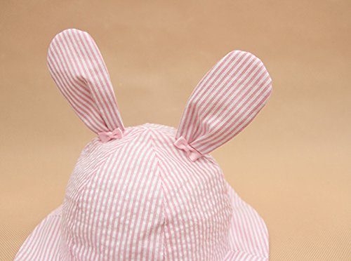 S&C Liveキッズハット 女の子UVcut帽子 ウサギハット かわいいウサギ耳とリボン付き 紫外線対策 新生児の子供向けキャップ ピンク しま模様 お出かけ帽子 赤ちゃん帽子 超かわいい 100%綿#16200 (XS(頭囲44cm、新生~3ヶ月))