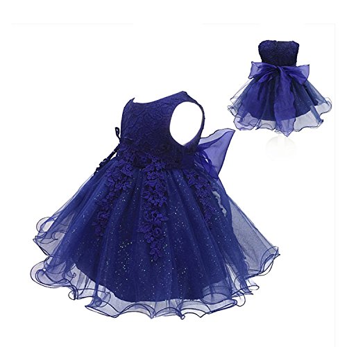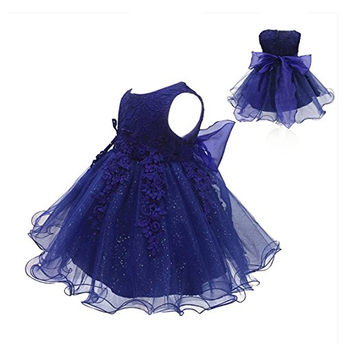 S&T ベビードレス 新生児 子供ドレス ベビー服 フォーマル 赤ちゃん 綿裏生地 結婚式 お宮参り 七五三 記念撮影用 ブルー 100