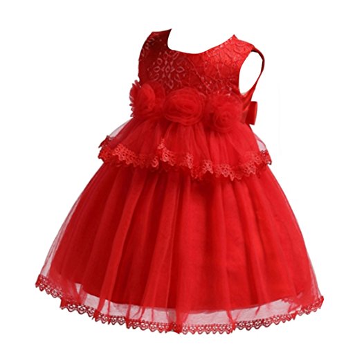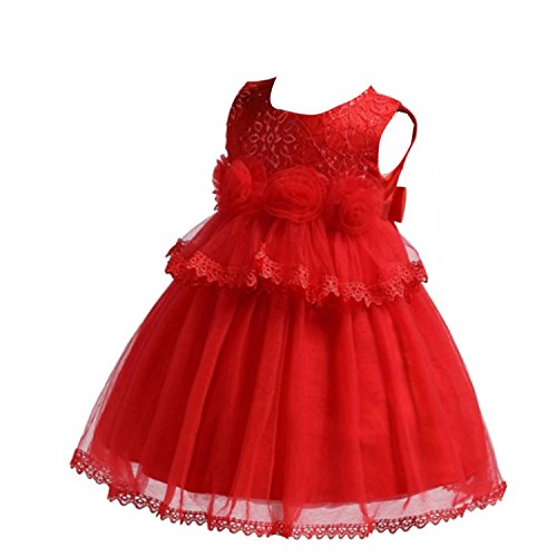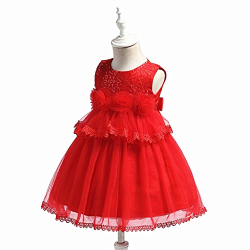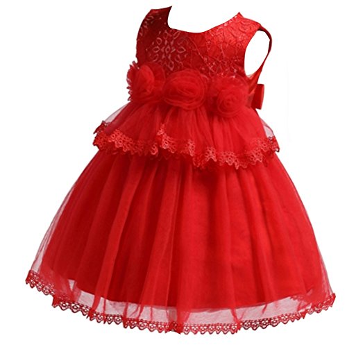 S&T ベビードレス 新生児 結婚式 お宮参り 七五三 入園式 ベビーワンピース 赤ちゃん フォーマル 記念日 撮影用 レッド 90
