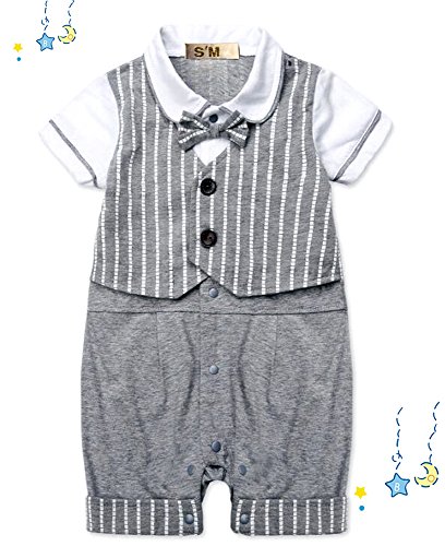 S'Mベビーフォーマ男の子セレモニーロンパースタキシードベストストライプ結婚式宮参り