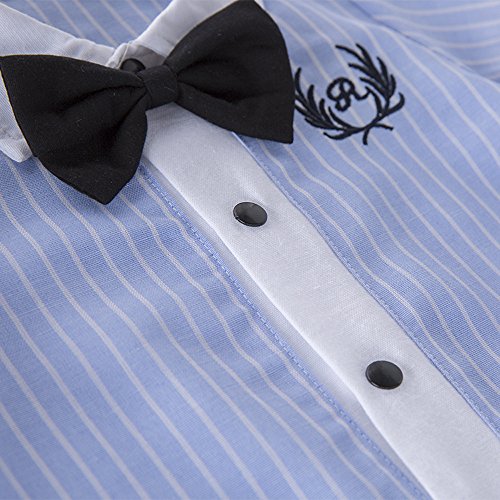 S'M(エスエム) 男児ベビー服フォーマルロンパース男の子タキシード風 カバーオールベビーフォーマル カバーオール折り襟 半袖 薄手 ボーイズロンパース 蝶結び ブルー紳士風洋服 夏のイベント (95, ブルー)