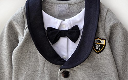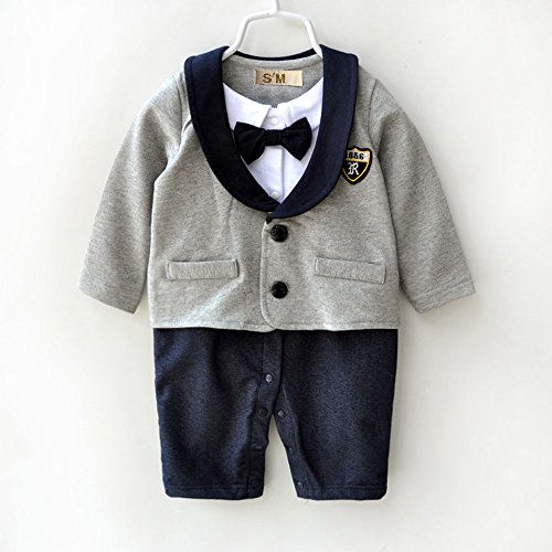 S’M(エスエム) ベビーフォーマルロンパース男の子スーツ風カバーオール子供服男児 長袖 グレー (70, グレー)