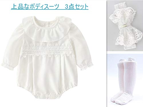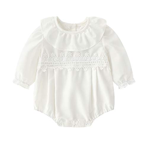 S'Mベビーキッズ服ロンパースフォーマルレース襟女の子長袖秋ホワイトピンクセレモニードレス新生児ハーフバースデーお宮参り子供入園式初節句結婚式お宮参りbaby出産祝い (60CM, ホワイト1)