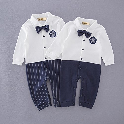 S'M(エスエム) ベビー服..男児フォーマルロンパース男の子カバーオール白いシャツ紳士風洋服 長袖 イベント 70cm~95cm … (70, 紺)