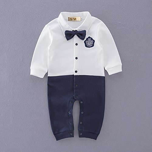 S'M(エスエム) ベビー服.男児フォーマルロンパース男の子カバーオール白いシャツ紳士風洋服 長袖 イベント 70cm~95cm … (95, 紺) …