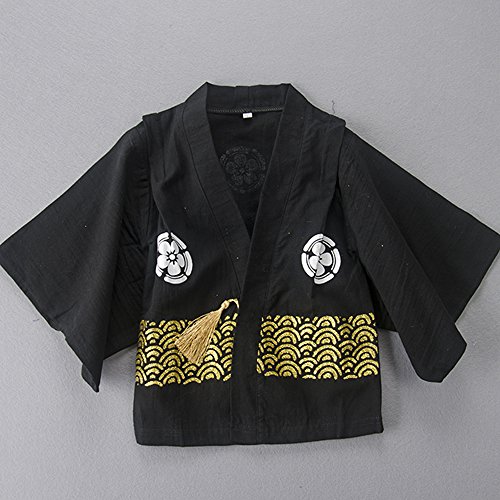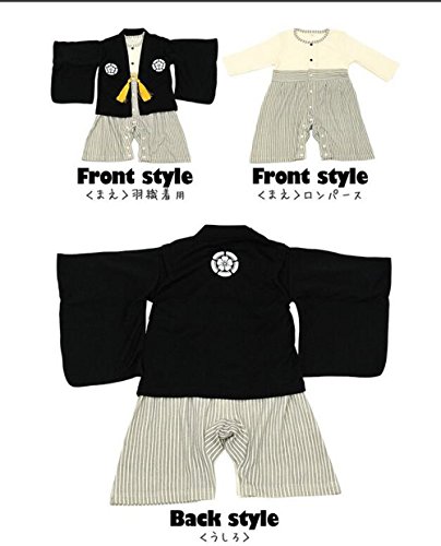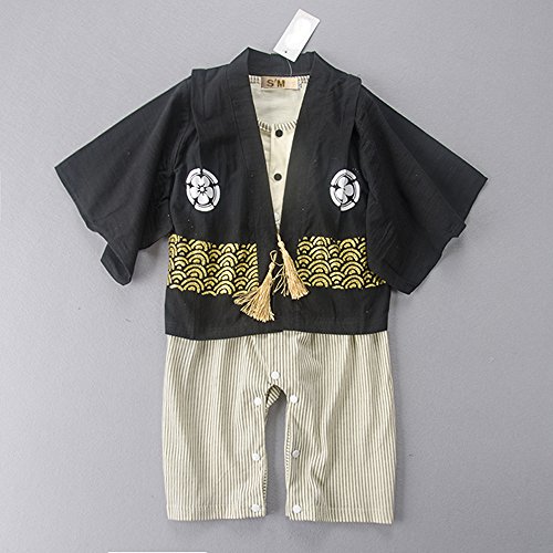 S'M (エスエム) 男の子 フォーマル ベビー キッズ 着物子供服紋付袴風 カバーオール ロンパース 和服 長袖 お正月 百日祝い 出産祝い ギフト 結婚式 誕生日 お食い初め お宮参り 記念日 七五三 (95cm, ブラック)