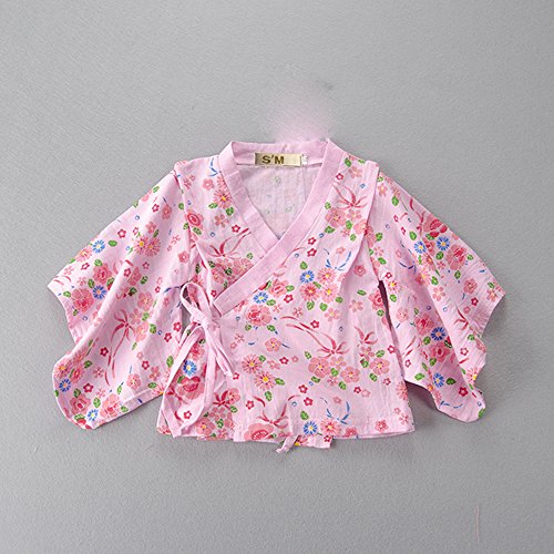 S'M (エスエム) ベビー服 女の子フォーマル ロンパース カバーオール 和服 羽織 女の子 和服 長袖 お正月 百日祝い 出産祝い ギフト 結婚式 誕生日 お食い初め お宮参り 記念日 七五三 (90cm, ピンク)