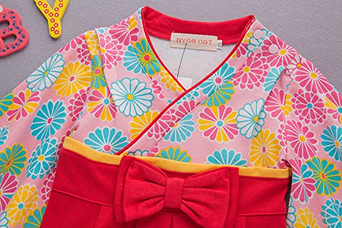 S'M (エスエム) ベビー服 女の子フォーマル ロンパース カバーオール 和服 羽織 女の子 和服 長袖 お正月 百日祝い 出産祝い ギフト 結婚式 誕生日 お食い初め お宮参り 記念日 七五三 (95, レッド(菊))