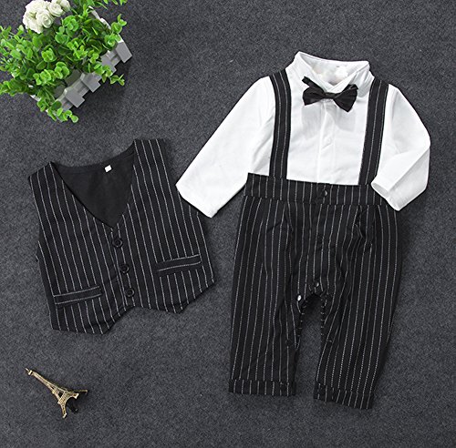 S'M(エスエム) ベビーフォーマルロンパース+ベスト二点セット カバーオールベビーフォーマル カバーオール長袖 半袖 春秋冬 厚手 薄手 ボーイズロンパース 蝶結び 白いシャツ紳士風洋服 ブラックボーダー柄 長袖70cm~95cm 初節句やハーフバースデーなどのイベント … (80, ブラック長袖)