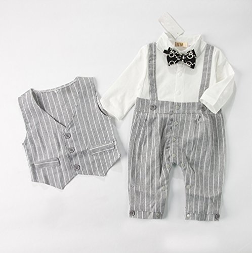 ベビーフォーマルロンパース+ベスト二点セット カバーオール白いシャツ紳士風洋服 グレー 長袖70cm~95cm 初節句やハーフバースデーなどのイベント (90, グレー) S'M(エスエム)