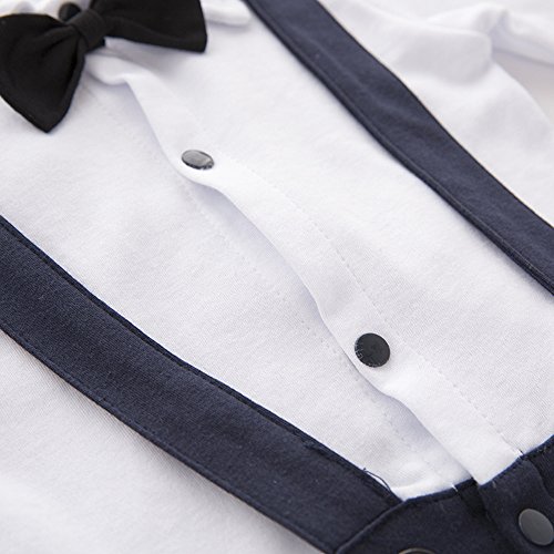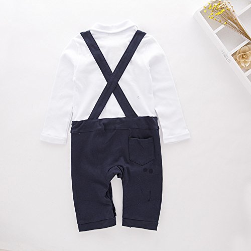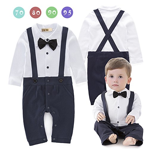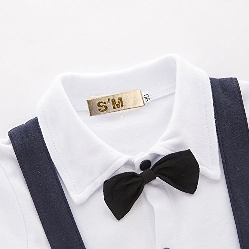 S'M(エスエム) ベビー服フォーマルロンパース男の子カバーオール白いシャツベルトつき紳士風洋服 長袖春 イベント 70cm~95cm (90cm, ホワイト) … (95, 紺)