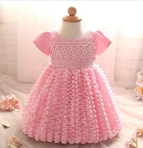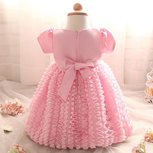 S'M(エスエム)子供服女の子フォーマルワンピース女児ドレス新生児パーティー フォーマル結婚式 ホワイトピンク半袖 (80CM, ピンク)
