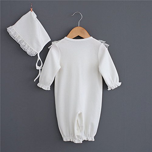 S'Mベビー服新生児ロンパースフォーマル女の子カバーオール幼児 ツーウェイオール帽子二点セット長袖無地フリルカジュアル出産祝い退院祝いホワイト ピンクS'M(エスエム)) (70, NO1 ホワイト )