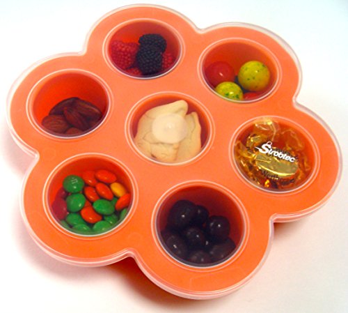Strobtec MULTI-PURPOSE FOOD STORAGE container tray comes in 7 compartments and its 100% Soft Silicone material which is FDA approved, bacteria resistant and free of BPA, PVC, latex, lead, or other toxins.;PERFECT FOR BALANCED AND PORTION CONTROL meal for all stages of your child's developmental period.;SIMPLE WAY TO STORE breast milk, purees, and semi-solids. You can also add your own recipe and securely attach the air tight lid which will prevent any spills and place it in the freezer.;ON TO GO SNACK CONTAINER and easy to clean and store. Food Containers are made from flexible Silicone material so it is quick and easy to remove portion by simply popping out the desired amount.;FOR OLDER KIDS, enjoy baking your favorite muffins or cupcakes. Ideal for taking along healthy snacks for any outdoor picnics with your little ones.