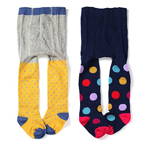 キッズ 女の子 綿 ファッション タイツ 可愛い 動物柄 スポット柄 花柄 2足セット (スポット柄, 1-2歳)