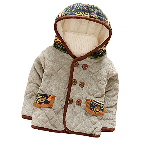 【SABLES】フード付 エスニック柄 キルト 長袖 カジュアル ジャケット 幼児 レッド グレー イエロー 80cm 90cm 100cm 110cm (100cm, グレー)