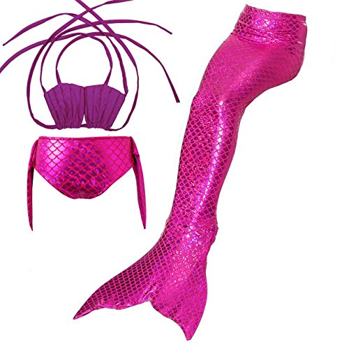 ガールズ 水着 人魚 3点セット マーメイド テール 夏 キッズ 子供 ベビー コスチューム 人魚姫 着やせ 海 泳ぎ みずぎ 可愛い スイムテール カジュアル ファッション ( 120 パープル + ローズ )