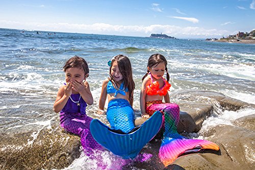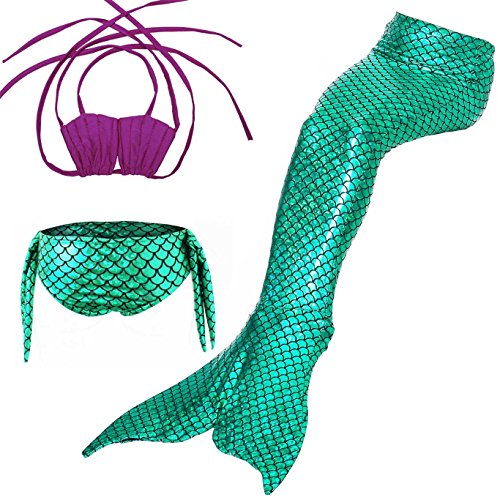 ビキニ 人魚 水着 マーメイド テール 3点セット ガールズ 夏 キッズ 子供 ベビー コスチューム 人魚姫 着やせ 海 泳ぎ みずぎ かわいい スイムテール 写真 撮影 ( 110 パープル + グリーン )
