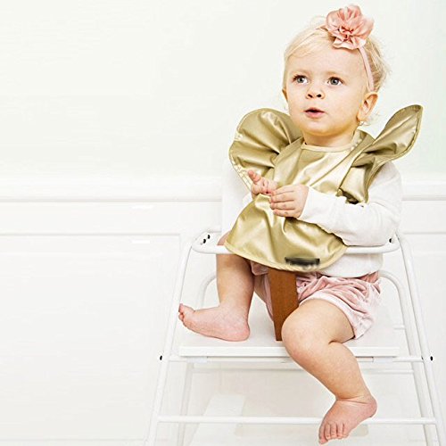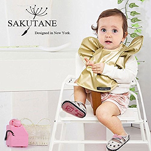 (サクタネ)SAKUTANEベビー キッズ ニシキ 長袖食事用 長袖エプロン 防水 全身防水 汚れ落ちやすい ポケット付き スタイ 食べこぼしポケット付 かわいい マジックテープ フリル 袖フリル ドット柄 リボン スリーブビブ 発食事用 袖ビブ 保育園用 6~24ヶ月 ベルクロタイプ ワンタッチテープ付き アニマルリーフ 子供用 大判 ゴールド
