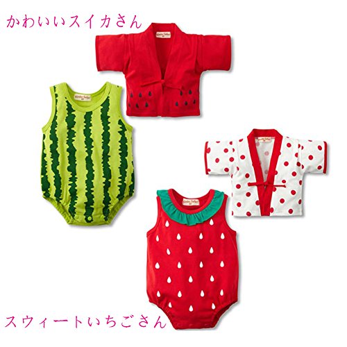 (サクタネ)SAKUTANEベビー キッズ 袴 ロンパース 初節句 きもの風 和装 ゆかた カバーオール 二件セット 紅 色 スイカ いちご 高品質 綿100% 柔らか 女の子 男の子 着物 きもの はかま ベビー服 桃の節句 ひな祭り お食い初め 御百日祝い お正月 年賀 写真 可愛い 着物姿 結婚式 出産祝い ひな祭り お宮参り 秋 冬 夏 春 80cm/90cm/95cm スイカ 95