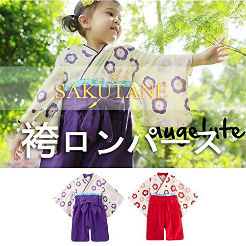 SAKUTANE 女の子 袴 ロンパース ベビー和服 浴衣 カバーオール 和風 端午の節句 ベビー着物 長袖 全開き 半開き 女の子 綿紅紫梅 高品質 綿 高品質お食い始め 七五三 子供の日 可愛い 和装 フォーマル キッズ 夏祭り 盂蘭盆 100祝い 結婚式 出産お祝い 赤ちゃん 記念 写真 お宮参り 年賀状卒業式 卒園式 雛祭り 正月 プレゼント ギフト子供用 はかま ひな 涼しい80cm/90cm/100cm レッド パープル Purple 70