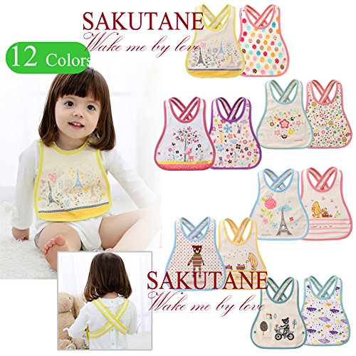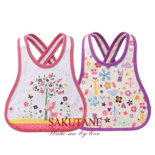 SAKUTANE(JP)食事エプロン 保育園 二枚入り防水 よだれかけ ベビースタイ ビブ お食事エプロン 給食のエプロン 新生児 可愛い 便利で 袖なし 柄多数 綿100%