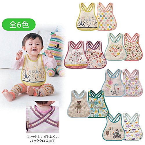 SAKUTANE(JP)食事エプロン 保育園 二枚入り防水 よだれかけ ベビースタイ ビブ お食事エプロン 給食のエプロン 新生児 可愛い 便利で 袖なし 折り返しポケット 柄多数 綿100%