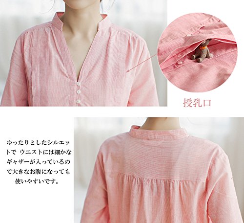 ワンピース ゆったり プルオーバー チュニック スタイル レディース マタニティ 授乳口付き 綿麻 ルームウェア パジャマ マタニティ 授乳口