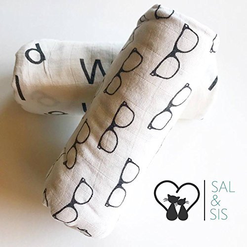 SAL & SIS 2パック スワドルブランケット 70% 竹 30% コットン モスリンブランケット 手紙 メガネ