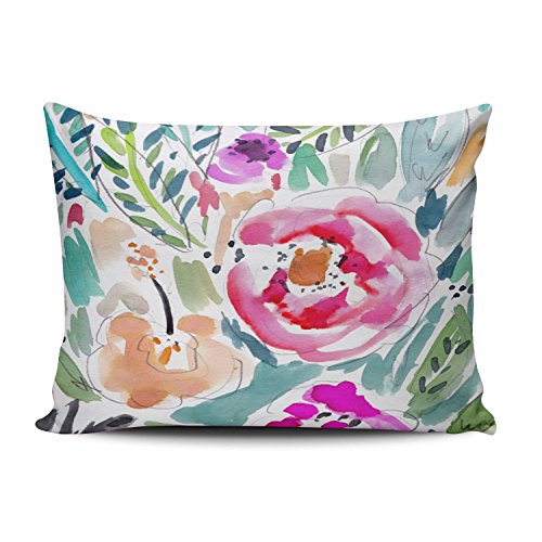 salleingカスタムファッションホーム装飾枕カバーカラフルなトロピカル水彩花柄正方形枕カバークッションケース1つ両面印刷 12"x18"