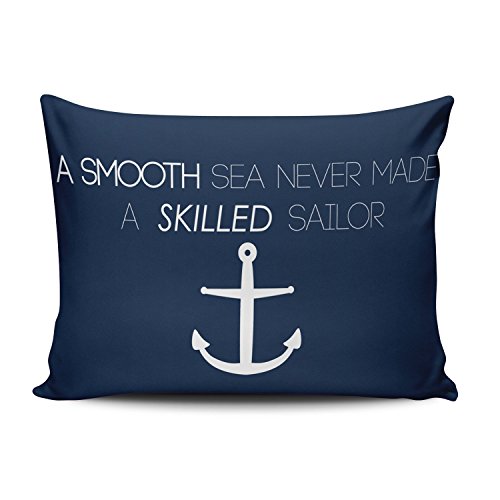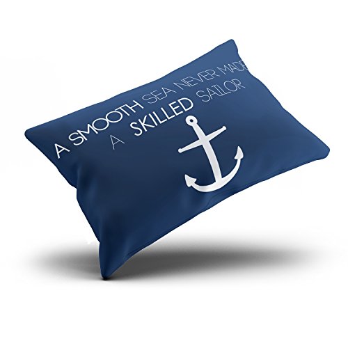 salleingカスタムファッションホーム装飾枕カバー海軍マリンアンカー引用符A Smooth Sea Never Made A Skilled Sailor正方形枕カバークッションケース1つ両面印刷 12"x20" ブルー