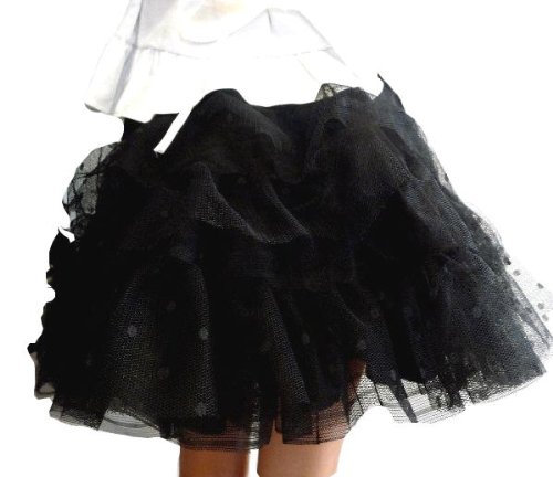 3段フリルになっていて一番上がドットのレース、二段目がハリのあるパニエ生地、一番下が透けない黒のしっかりとした生地です。 ドットチュールがゴージャスなフリルスカートです ハリのある素材でパニエいらずです 卒園式、入学式、発表会、結婚式などなど色々な場面で大活躍します お姫様になってかわいく着こなしてくださいね SALLY標準スカートサイズ表 日本(韓)100(5) 着丈=20・ウエスト=18 日本(韓)110(7) 着丈=25・ウエスト=21 日本(韓)120(9) 着丈=28・ウエスト=22 日本(韓)130(11) 着丈=29・ウエスト=23 日本(韓)140(13) 着丈=32・ウエスト=24