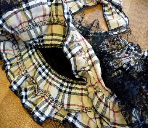 (サリー)SALLY リボン付きレースフリフリ2段スカート バーバリー風ベージュチェック [キッズ] タグサイズ13