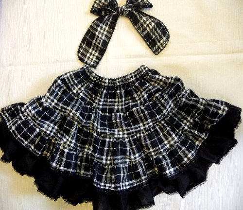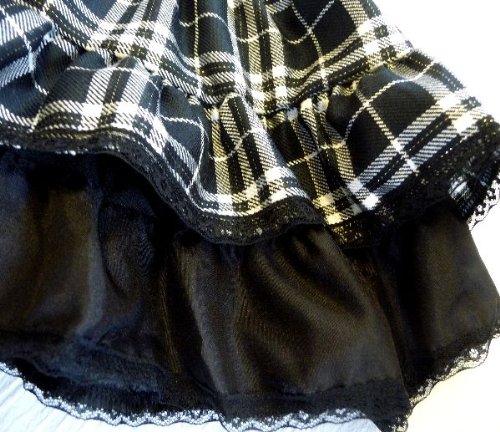 (サリー)SALLY リボン付き2段フリフリスカート ラメチェック黒 [キッズ] タグサイズ13
