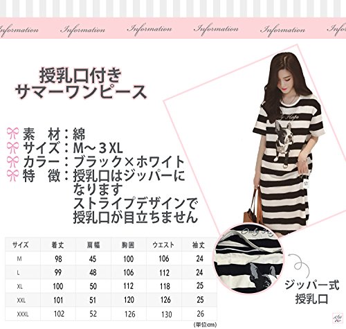 SAM&co (サムアンドコー) 授乳服 マタニティ ワンピース 薄手 M~3XL ストライプ 授乳口付き (L)