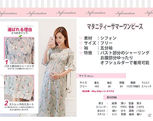 SAM&co (サムアンドコー) マタニティドレス ウエストフリー オフショルダー ストレッチ シャーリング 小花 マキシ