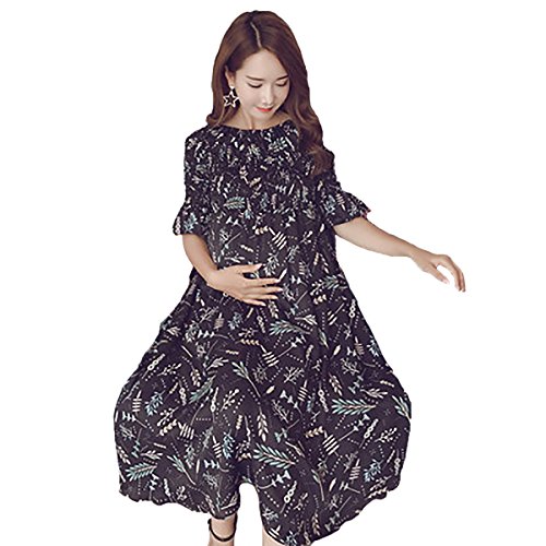 SAM&co (サムアンドコー) マタニティドレス 3色展開 ウエストフリー オフショルダー ストレッチ シャーリング 幾何学 マキシ (ネイビー)