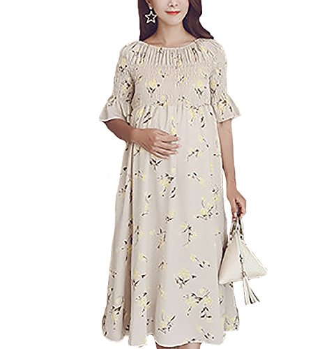 SAM&co (サムアンドコー) マタニティドレス 3色展開 ウエストフリー オフショルダー ストレッチ シャーリング 花柄 マキシ (グレー)