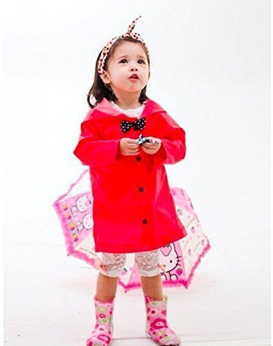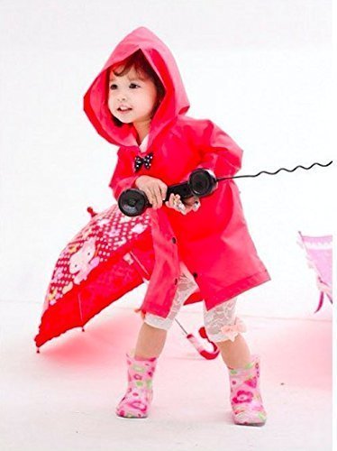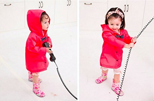 SAMYO プレミアム キッズ レインコート レインウェア リボンが可愛い カッパ 子供用 SM-0598 (M, レッド)