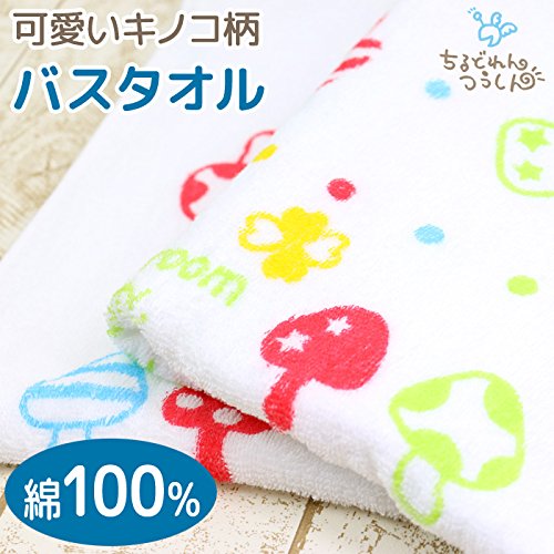 知育要素の入った綿100%のバスタオル!同じ色や形のキノコをお子様と一緒に探して楽しんでください!