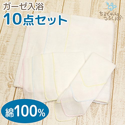 ガーゼハンカチ 7枚 入浴布 3枚 セット ベビー 新生児 赤ちゃん 10点 無蛍光 出産準備 出産祝い ギフト