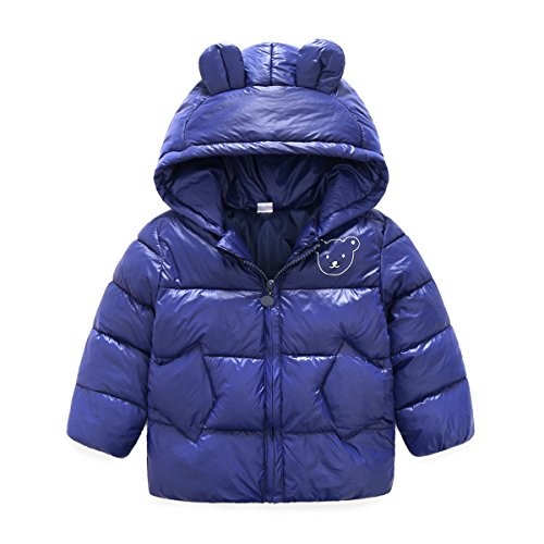 Sanke キッズ ダウンジャケット 子供服 ダウンコート ダウン 中綿ジャケット 防寒 保温 アウターウエア 女の子 男の子 フード付き 5色 5サイズ 秋冬 009ネイビー130cm